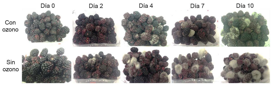 A nivel postcosecha, se emplean técnicas de desinfección para controlar fitopatógenos, como el uso de ácido peracético, agua electrolizada, luz pulsada y plasma frío, como alternativas al uso de cloro (Pérez-Lavalle et al., 2020). Estos autores sugieren que el ozono gaseoso podría ser un método postcosecha eficaz para desinfectar moras frescas. Este tratamiento permite eliminar Botrytis sin comprometer su calidad nutricional.