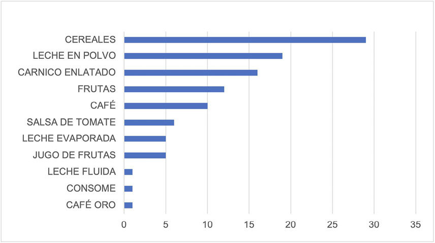 Para algunos alimentos con los que se realizó solo una ronda (leche fluida, consomé, café oro) se tomó la decisión de no continuar con rondas regulares de estos materiales, por diferentes razones. En leche fluida, hubo problemas de rotura y derrames en el envío, y se contaba con otras muestras como las de leche en polvo o condensada que eran representativas del grupo de alimentos. Los néctares o jugos de frutas también dejaron de utilizarse por problemas de roturas y derrames, por lo que se continuó solo con los colados de frutas.