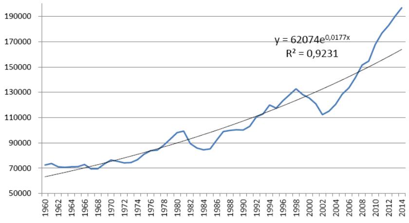 - PBI por habitante. 1960-2014. Pesos constantes de 2005
