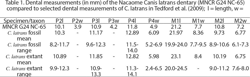 These features justify assignment of the Nacaome dentary to Canis latrans.